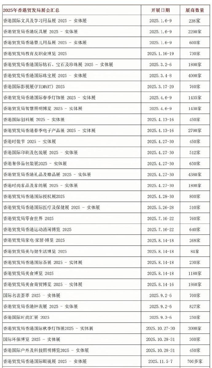 Article Title:2025 Hong Kong Exhibition Schedule